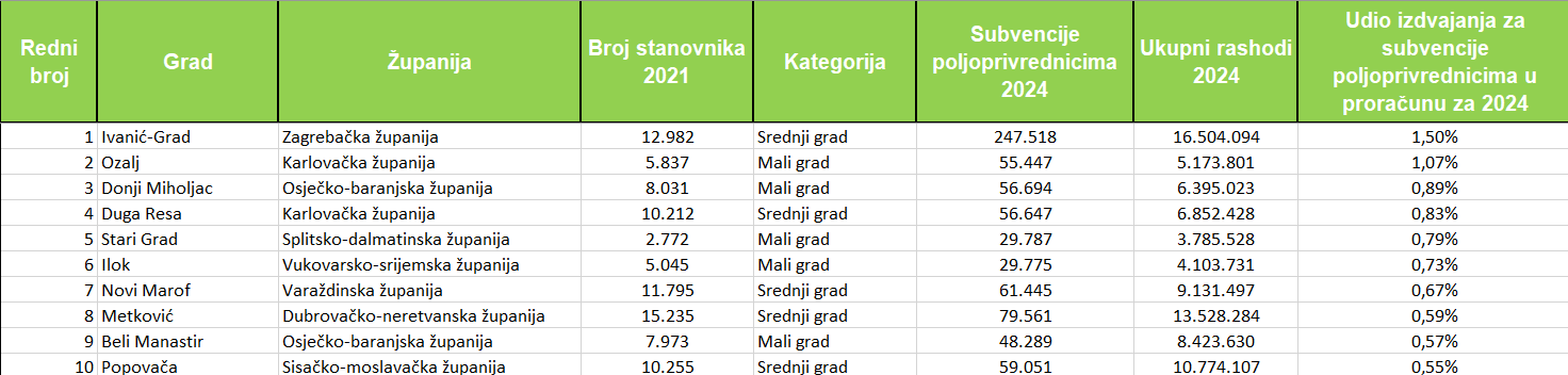 S iznosom od 9,50 eura po stanovniku, Ozalj je među gradovima s najvećim ulaganjima u poljoprivredu na lokalnoj razini, dok se s udjelom od 1,07 posto gradskog proračuna nalazi na drugom mjestu u Hrvatskoj. U ukupnom kontekstu, hrvatski su gradovi za potpore poljoprivrednicima izdvojili oko 3,27 milijuna eura, što je 17 posto više nego godinu ranije, čime se dodatno naglašava važnost ovakvih lokalnih izdvajanja.