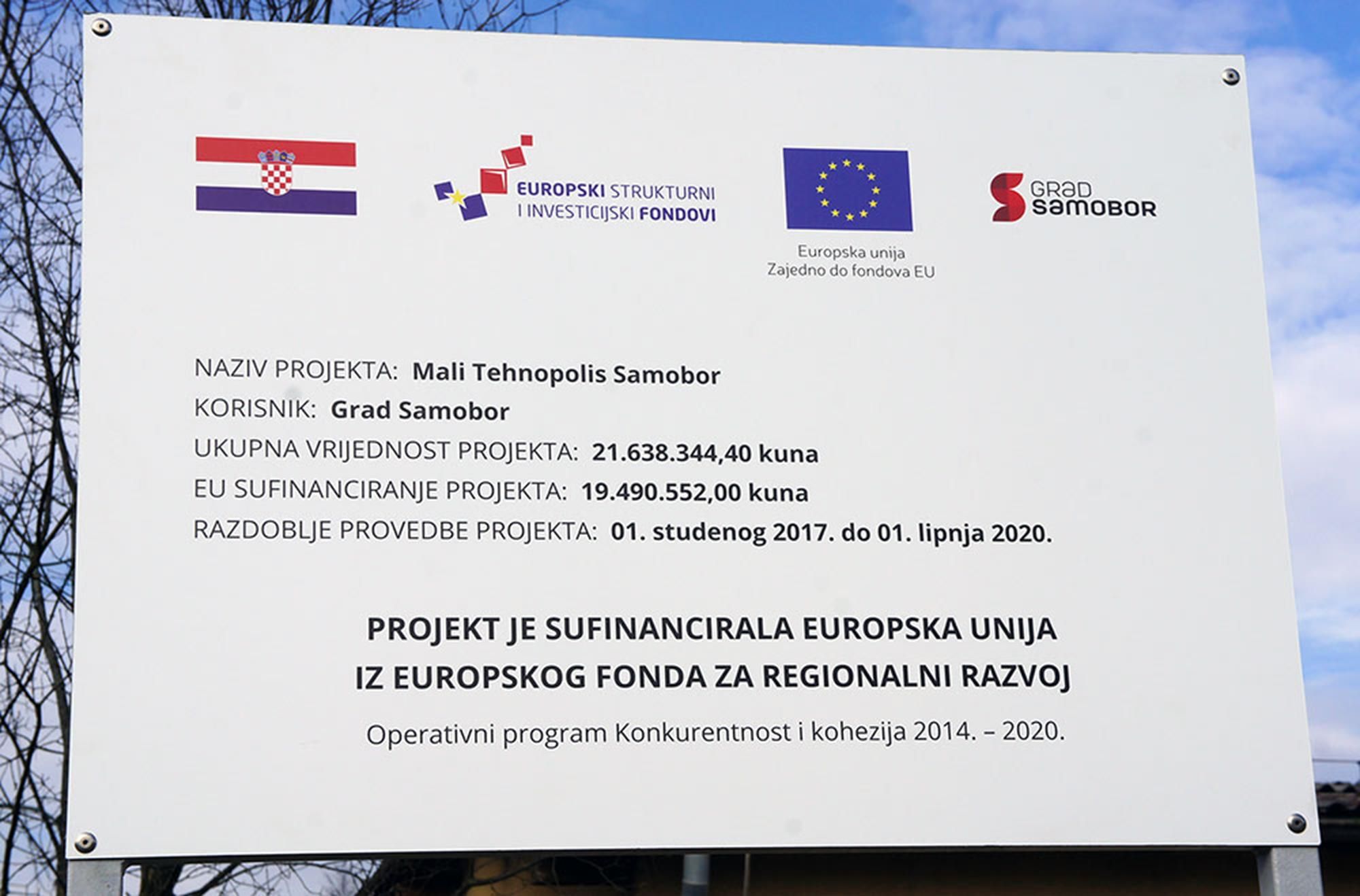 Na listi ključnih ekonomskih projekata koje ističu kao svoje adute nalazi se ‘Mali tehnopolis Samobor’ u sklopu kojega je poduzetnicima samoborskog kraja ponuđeno za zakup 16 prostora, kvadrature od 20 do 119 ‘kvadrata’, vrijednosti 21,5 milijuna kuna. Završetkom projekta za koji je Grad dobio 19,4 milijuna kuna iz Europskih fondova, ponajprije je otvoren mladim poduzetnicima. Podignute su dvije potpuno opremljene zgrade koje se sastoje od poslovnih prostora koji se, pak, daju u zakup gospodarskim subjektima, multimedijalne dvorane, informatičke te obične učionice, prostora za co-working, prostora za specijalističku opremu (3d printere i skener), administrativnih prostore za zaposlenike, a Poduzetnički centar/inkubator je u radu od proljeća 2020.