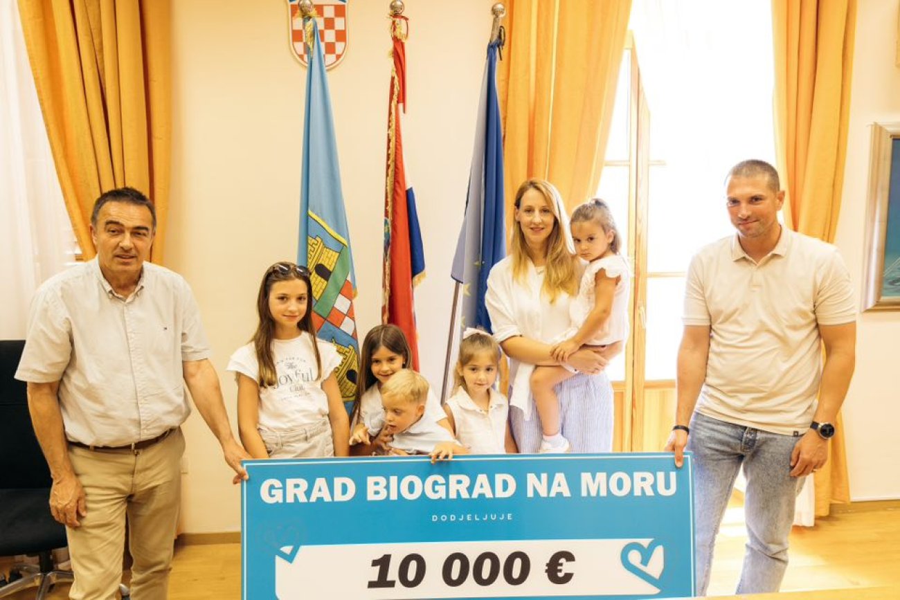 Zahvaljujući hrabrosti, požrtvovnosti i velikom srcu, Grad Biograd na Moru nagradio je ovu iznimnu obitelj s 10.000 eura potpore, kao priznanje obiteljima s više od petero djece, navode iz Grada. (m.p.d.)