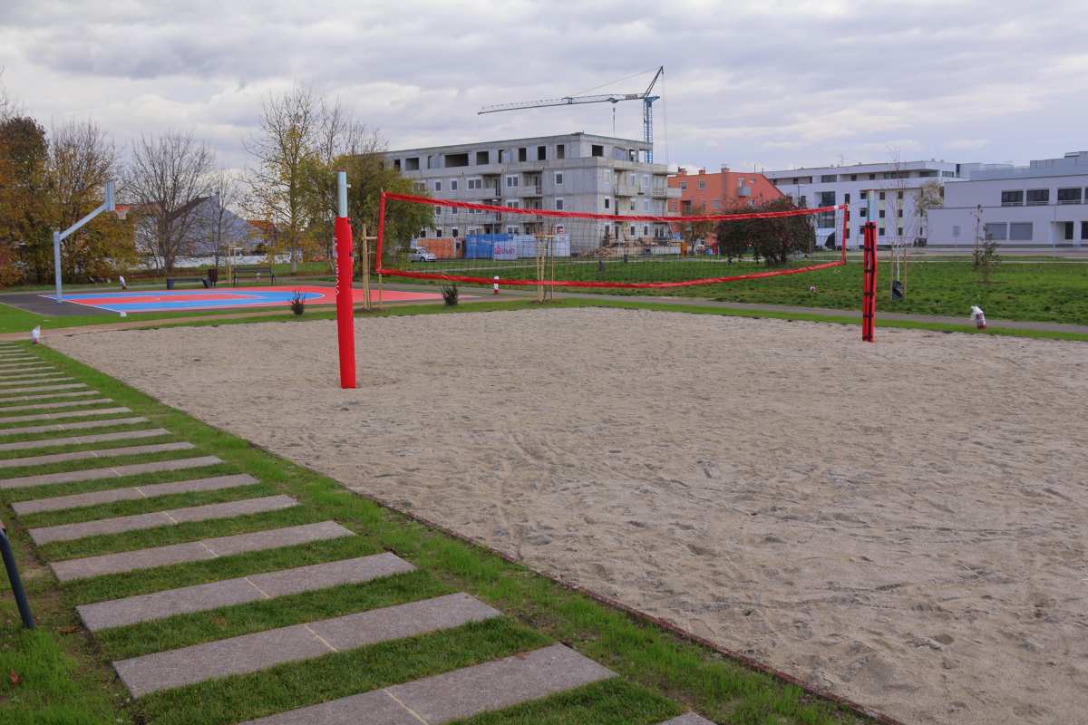 Igralište za odbojku na pijesku prostire se na površini od 128 m². Oko igrališta za odbojku na pijesku postavljena je zaštitna zona, te zaštitna mreža. Uz igrališta je postavljena i nova urbana oprema – stol sa klupama za društvene igre, drvene klupe s naslonom, pametne klupe (solarne) te koševi za smeće.