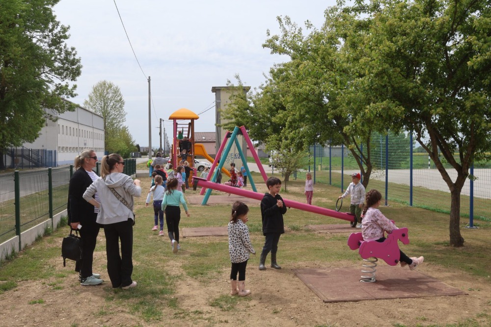 Novo igralište među prvima su isprobali mališani iz Dječjeg vrtića Cvrčak – Područnog odjela Stonoga, koji su u pratnji svojih odgajateljica uživali u igri i novim sadržajima. (Grad Čakovec)