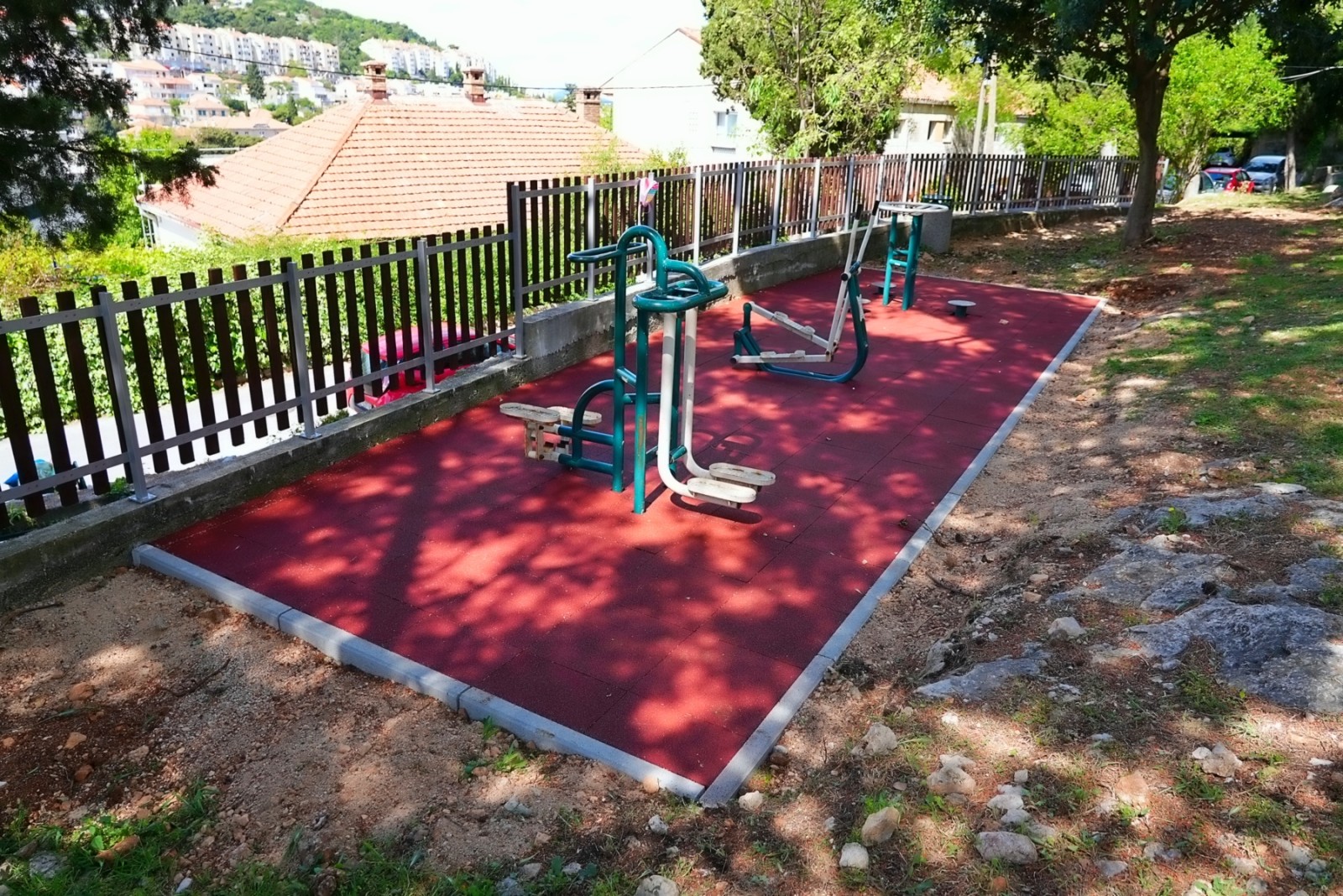 Na dijelu vježbališta izrađena je betonska podloga te je postavljena antistres gumirana podloga ispod sprava za vanjsko vježbalište. Zamijenjene su dotrajale dječje igračke i postavljeni novi elementi na obnovljenu podlogu, a izvedena je i zamjena oštećenih drvenih letvica, bojanje metalne konstrukcije i drvenih dijelova ograde te drugi sitni popravci.