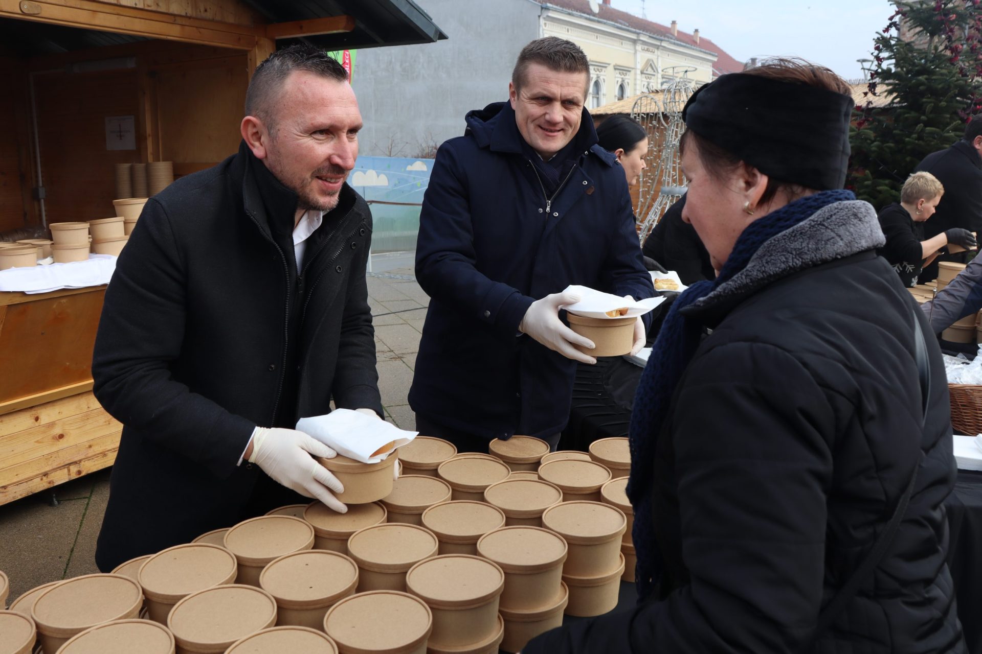 U podjeli su sudjelovali gradonačelnik Grada Križevaca Tomislav Katanović, njegov zamjenik Ivica Švagelj i pročelnici upravnih tijela Darko Masnec, Sandro Novosel i Krešimir Brunović koji su tom prigodom građanima poželjeli blagoslovljen Božić te sretnu novu 2026. godinu.