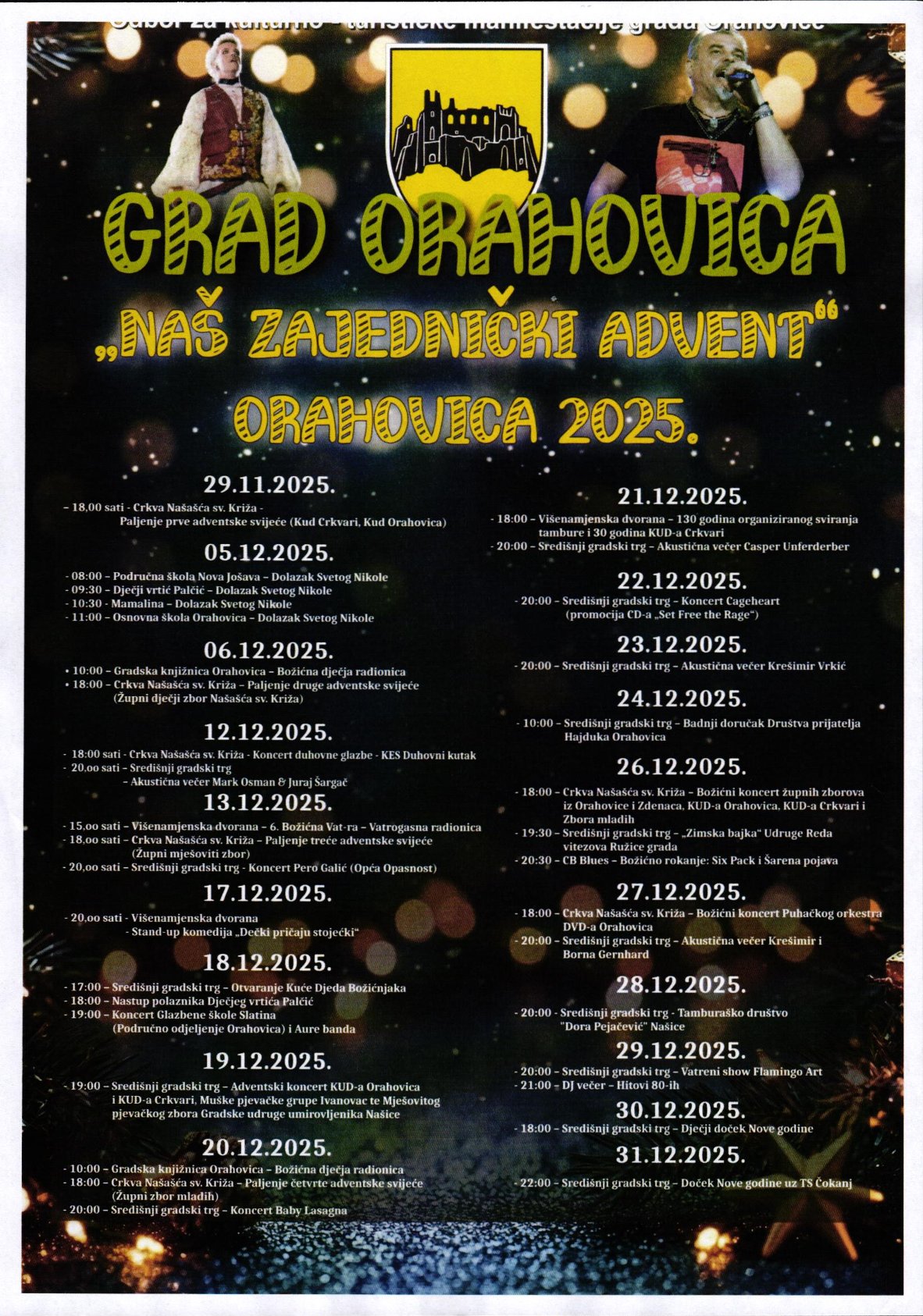 Grad Orahovica i Odbor za kulturno-turističke manifestacije grada Orahovice i ove godine organiziraju niz sadržaja za vrijeme Adventa.