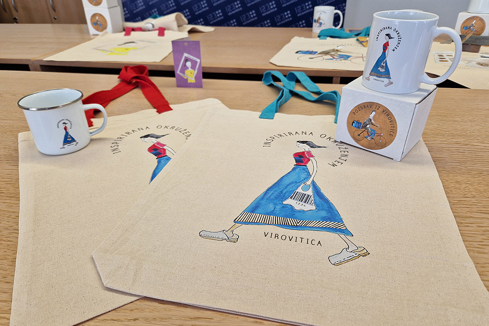 Set se sastoji od četiri proizvoda (lončić, majica, torba, notes) u četiri motiva koji na simpatičan i prepoznatljiv način prikazuju svakodnevicu i posebnosti Virovitice – od lokalnih ljudi i gradske atmosfere do umjetničkih i kulturnih inspiracija našega kraja.