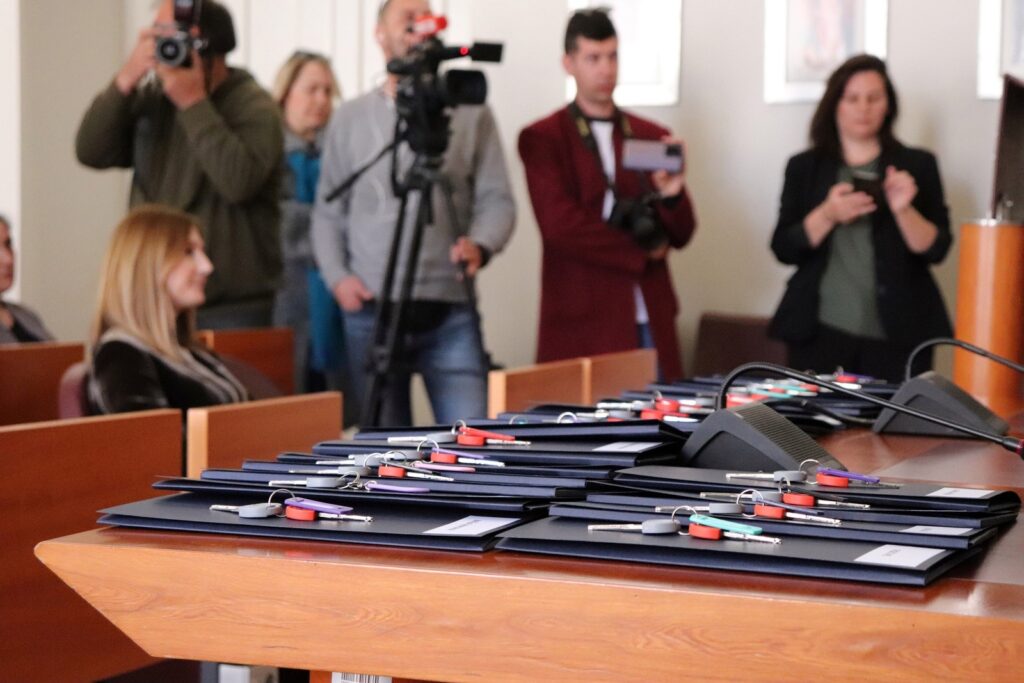 Gradonačelnik Mato Franković uručio je u četvrtak u gradskoj vijećnici ključeve sugrađanima koji su ostvarili pravo na korištenje gradskog stana u Mokošici i to prema jedinstvenom modelu ”Dubrovačke stanogradnje”. Ukupno 21 obitelj ostvarila je pravo na najam gradskog stana temeljem Drugog javnog poziva za prikupljanje zahtjeva za davanje u najam stanova u vlasništvu Grada Dubrovnika u svrhu rješavanja stambenog pitanja mladih i mladih obitelji.