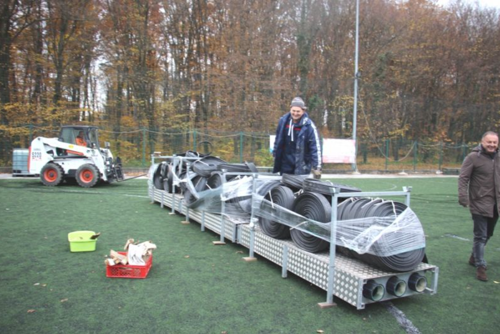 Vrijedni djelatnici Sportskog centra Dugo Selo danas su krenuli s radovima na postavljanju terena za jednu od najdražih gradskih zimskih destinacija – klizališta pored Gradske sportske dvorane.