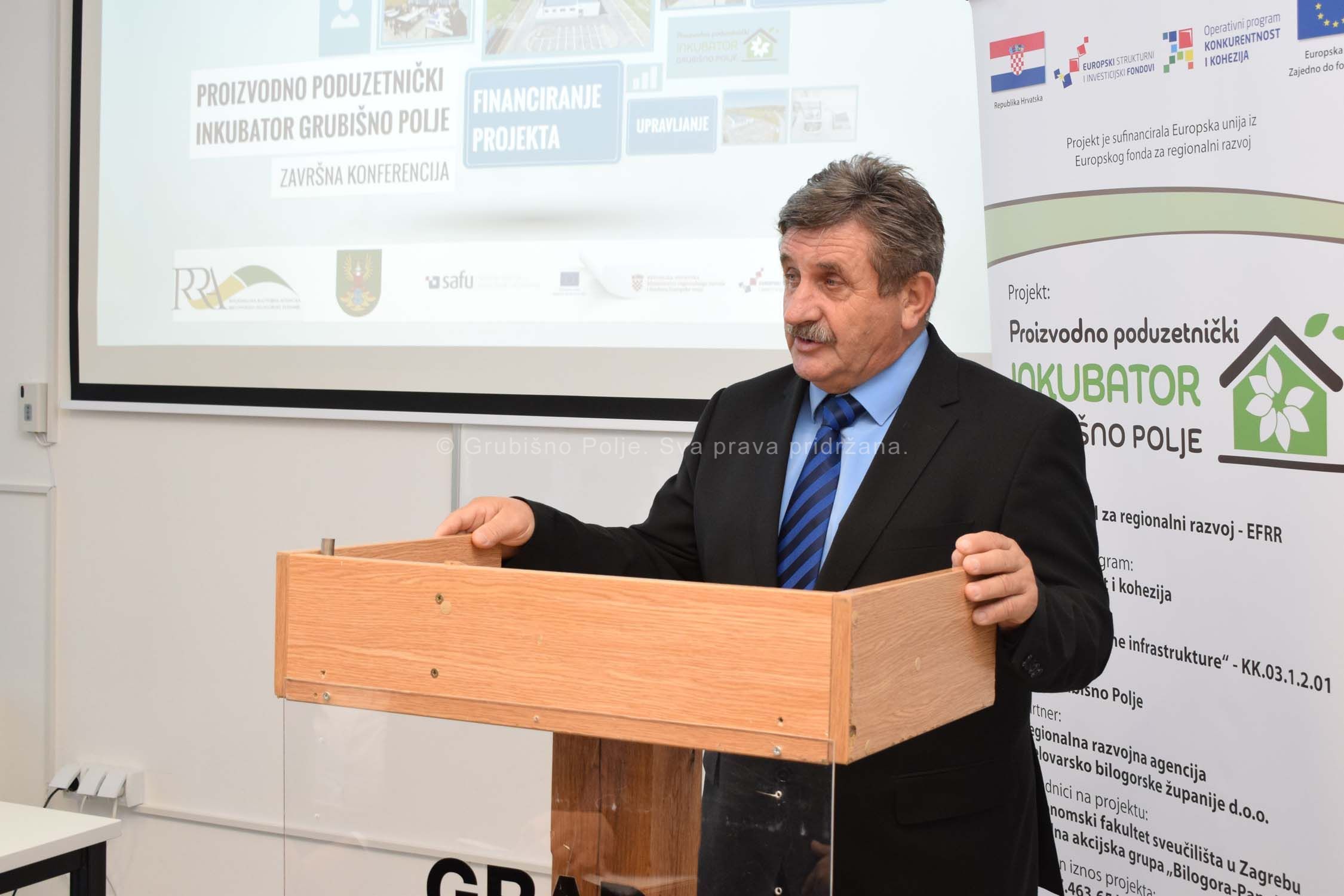 Ministar gospodarstva, poduzetništva i obrta Darko Horvat u okviru završne konferencije projekta i službeno je otvorio Proizvodno poduzetnički inkubator Grubišno Polje. Riječ je o projektu vrijednom oko 11.5 milijuna kuna, koji je udjelu od 99,33 posto financiran putem Europskog fonda za regionalni razvoj – Razvoj poslovne infrastrukture, a njegov je nositelj Grad Grubišno Polje.