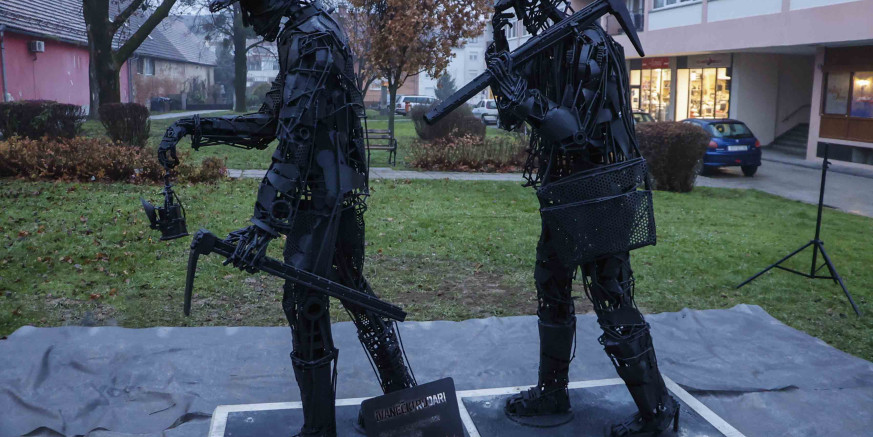 -Prošlost, sadašnjost, budućnost – to je sumarum ove skulpture. Njena izrada bila mi je izazov, želio sam na nju prenijeti i šljemove i pijuke i svjetiljke, uz slobodu umjetničkog izražavanja. Skulptura je gruba, oštra, ozbiljna, kao što je bio i rudarski posao. Rudare sam prikazao kao moćne figure, a takva je i skulptura. Ovo nije neka vesela družina patuljaka iz bajke – poručio je umjetnik.