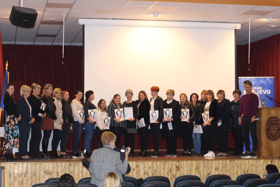 Ciljana skupina žena u sklopu projekta završila je edukacije u pučkom otvorenom učilištu Obris i stekla zvanja: cvjećar aranžer i voditelj ruralnog turizma. Povodom toga, voditeljica projekta Suzana Hora i ravnateljica pučkog otvorenog učilišta Obris Jadranka Krmpotić svakoj su gerontodomaćici uručile zaslužene diplome. (kutjevacki.hr, V.H.)
