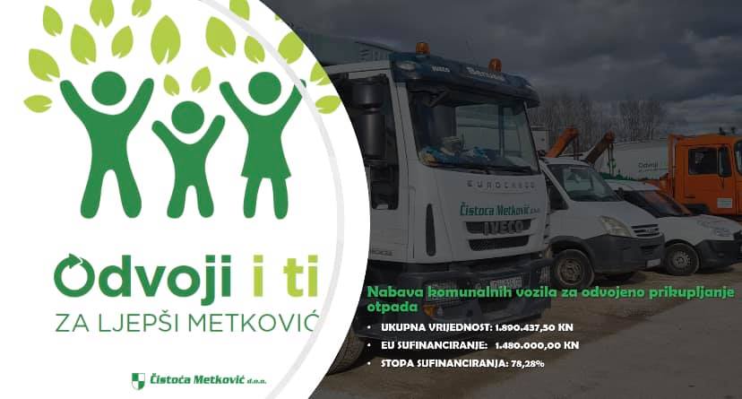 Grad Metković prošle je godine prijavio projekt nabave komunalnih vozila za odvojeno prikupljanje otpada na EU financiranje, a ovih dana dobili su odluku o financiranju.