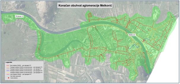 Projekt čine dvije komponente i to: Sanacija i dogradnje sustava odvodnje u aglomeraciji Metković- što uključuje izgradnju 44.491 m gravitacijskih kolektora, 1.418 m tlačnih vodova, 16 crpnih stanica, 2.326 prespajanja postojećih kućnih priključaka, 1.745 novih priprema za kućne priključke, 90 m sanacije bez raskopavanja, sanaciju 100 revizijskih okana, sanaciju 150 spojeva kućnih priključaka na kolektore te 15.107 m SDNU – sustava daljinskog nadzora i upravljanja te Rekonstrukcije i dogradnje sustava vodoopskrbe unutar grada Metkovića- što uključuje rekonstrukciju 11.875 m vodoopskrbnih cjevovoda, dogradnju 5.551 m vodoopskrbnih cjevovoda, prespajanje 1.340 kućnih priključaka, nabavu i ugradnju 5.500 vodomjera za daljinsko očitanje potrošnje s pripadnim terminalima i repetitorima te izgradnju 11 lokalnih stanica za podizanje tlaka.