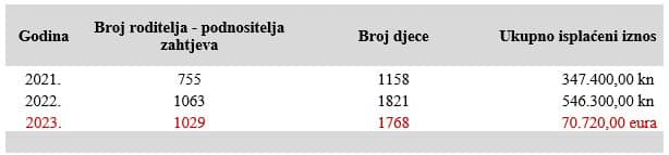 Tako je danas iz gradskoga Proračuna na račune 1029 roditelja / podnositelja zahtjeva, za 1768 djece uplaćeno ukupno 70.720 eura.