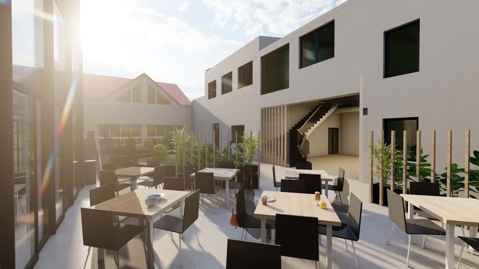 U prizemlju je smješten studentski restoran X-ica s kapacitetom od 120 mjesta, uključujući i vanjski dio, što će studentima omogućiti subvencioniranu prehranu na jednoj lokaciji.