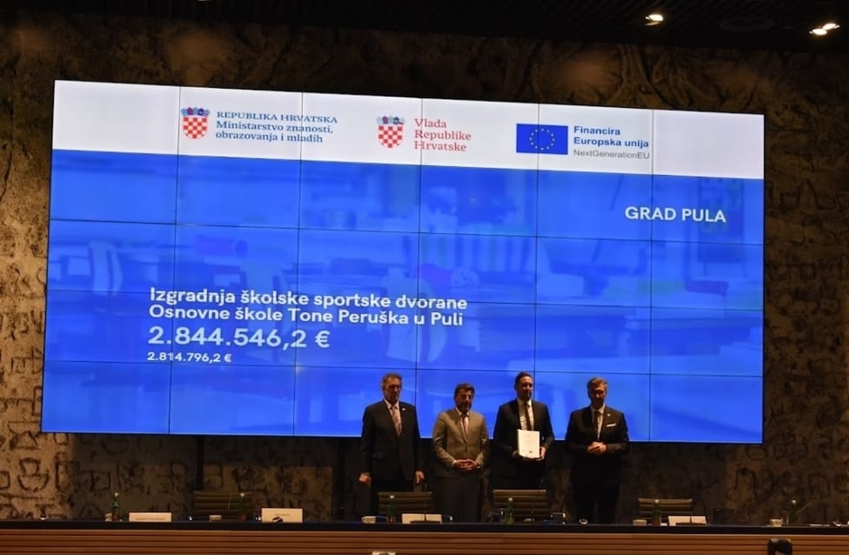Premijer Republike Hrvatske Andrej Plenković i ministar znanosti, obrazovanja i mladih Radovan Fuchs danas su uručili novih 35 ugovora vrijednih 193 milijuna eura za izgradnju, rekonstrukciju i opremanje osnovnih škola diljem Hrvatske, no posebna pažnja dana je Puli i projektu OŠ Tone Peruška, koji će omogućiti jednosmjenski rad i cjelodnevnu školu.