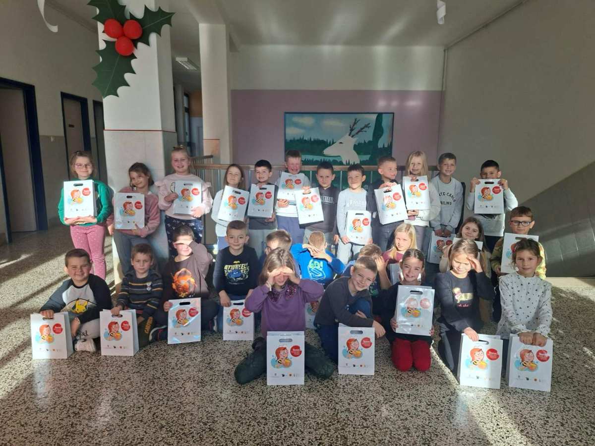 U sklopu nacionalnog programa „Školski medni dan s hrvatskih pčelinjaka“, jučer, 8. prosinca 2025. godine, u Osnovnoj školi Vladimira Nazora Pazin te u područnim školama u Trvižu, Motovunu, Karojbi, Svetom Petru u Šumi, Tinjanu, Gračišću i Cerovlju prvašićima je podijeljeno ukupno 158 staklenki meda s hrvatskih pčelinjaka, označenih znakom kvalitete. Uz med, učenici su dobili i edukativne brošure „Pčelica Jelica i medo Edo“, koje im na pristupačan i zanimljiv način približavaju svijet pčela i važnost njihove uloge u prirodi.