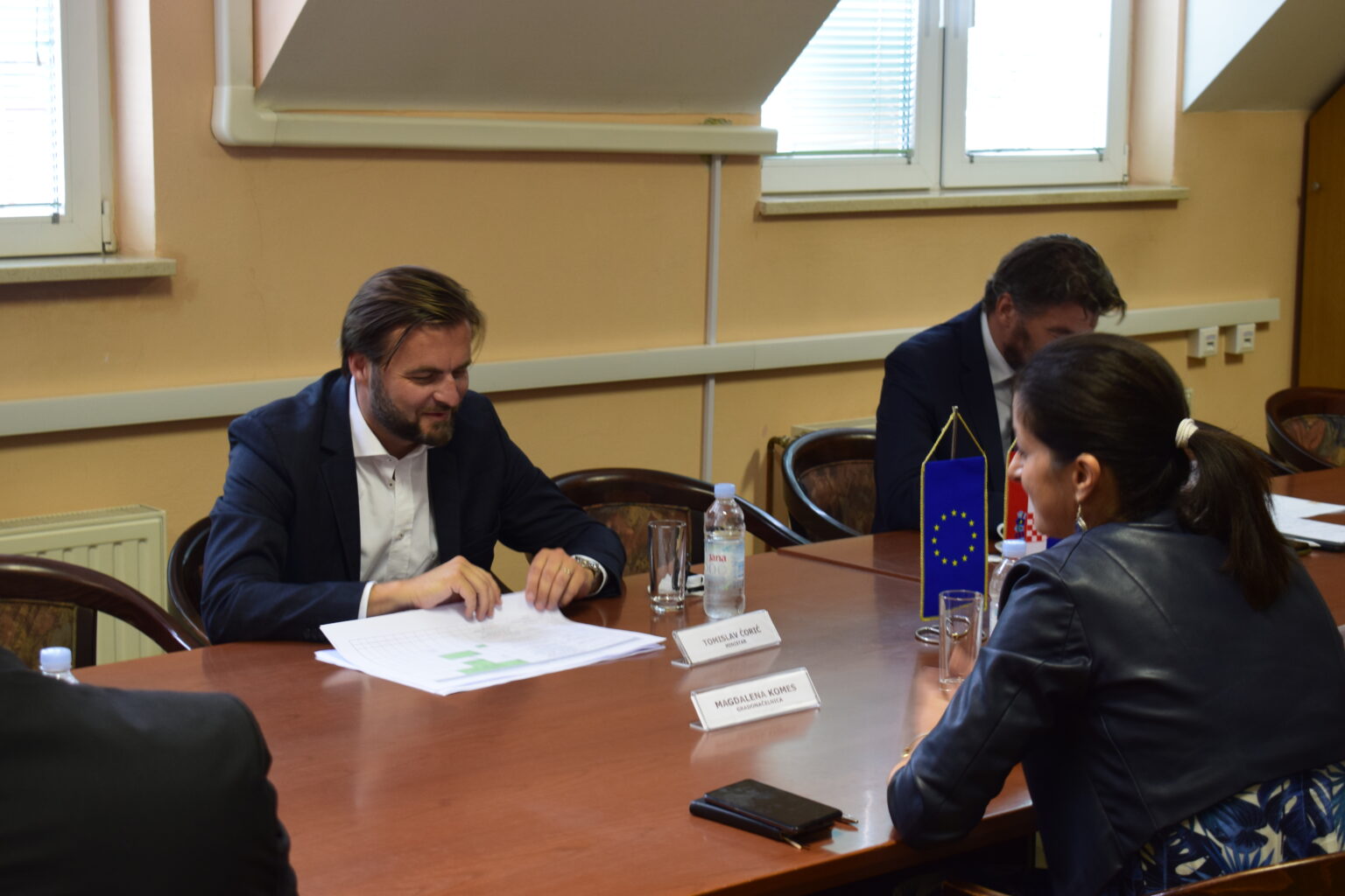 Na poziv gradonačelnice Magdalene Komes, u prostorijama izmještene Gradske uprave održan je sastanak s ministrom gospodarstva i održivog razvoja Tomislavom Ćorićem i suradnicima, državnim tajnikom Ministarstva rada i mirovinskog sustava Draganom Jelićem te županom Sisačko-moslavačke županije,Ivanom Celjakom.