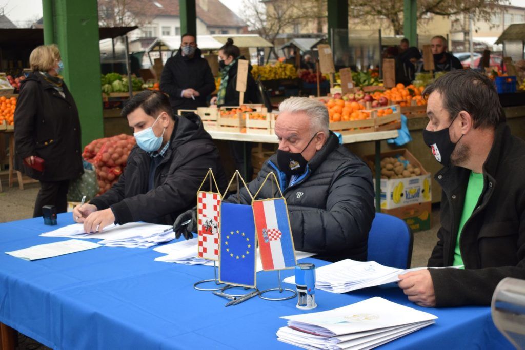 Potpisivanje Ugovora sa 17 poduzetnika koji su se prijavili na natječaj „Dodjela bespovratnih sredstava za razvoj poduzetništva u gradu Petrinji“ održano na gradskoj tržnici.