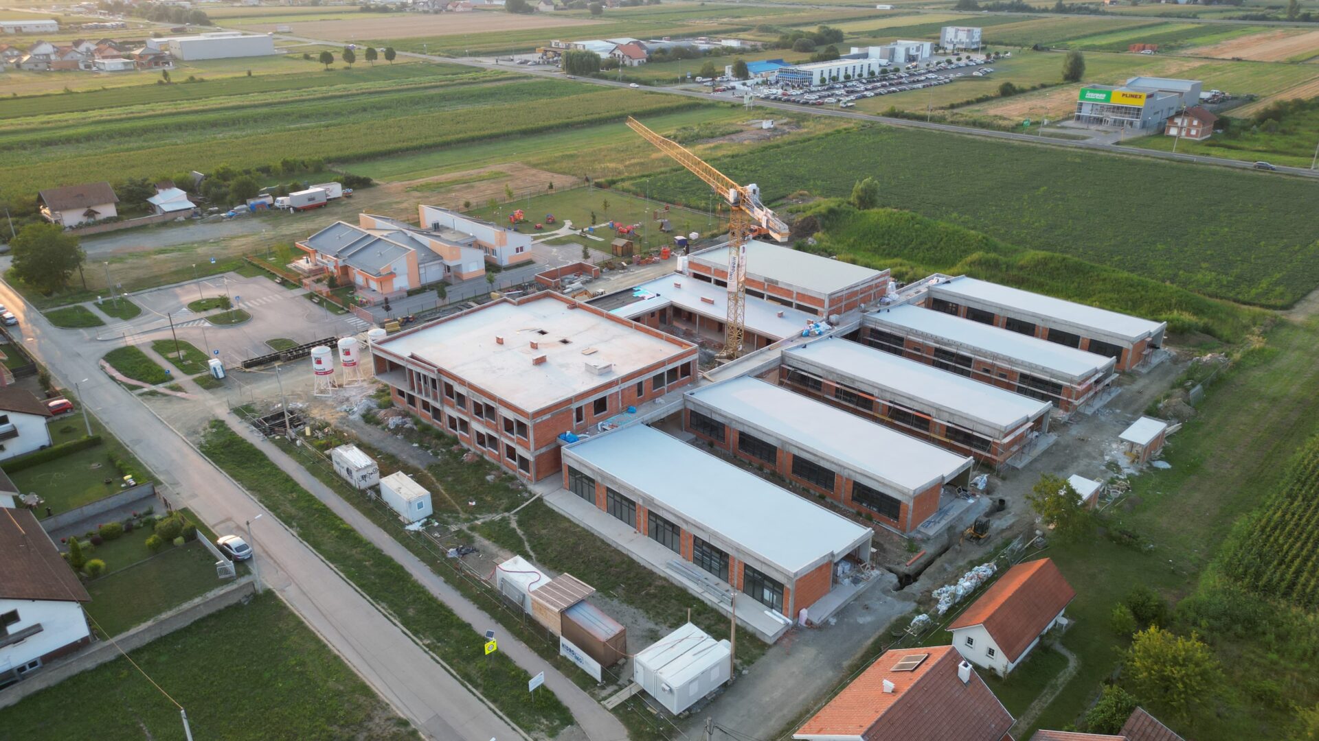 Infrastrukturni radovi i radovi uređenja objekta upravo intenzivno i traju na adresi nove OŠ Milan Amruš. Trenutno je odrađeno žbukanje u dilatacijama A i B, odrađen je cementni estrih paviljona i gletanje u paviljonima. Montirana je većina vanjske aluminijske bravarije, te dio unutarnje također. Ventilirana fasadna obloga paviljona je završena, trenutno se radi obloga balkona gospodarske zgrade kako bi zgrada poprimila još atraktivniju vizuru. Fasada je odrađena u svim slojevima osim završnog sloja, na svim paviljonima i na gospodarskoj zgradi. Na građevinskom objektu odrađena je i izolacija krova na svim paviljonima za topao i ugodan boravak, isto je učinjeno i na gospodarskoj zgradi. Vodovodne i strojarske instalacije kao i elektroinstalacije prate građevinske radove na gradilištu, informiraju nas.
