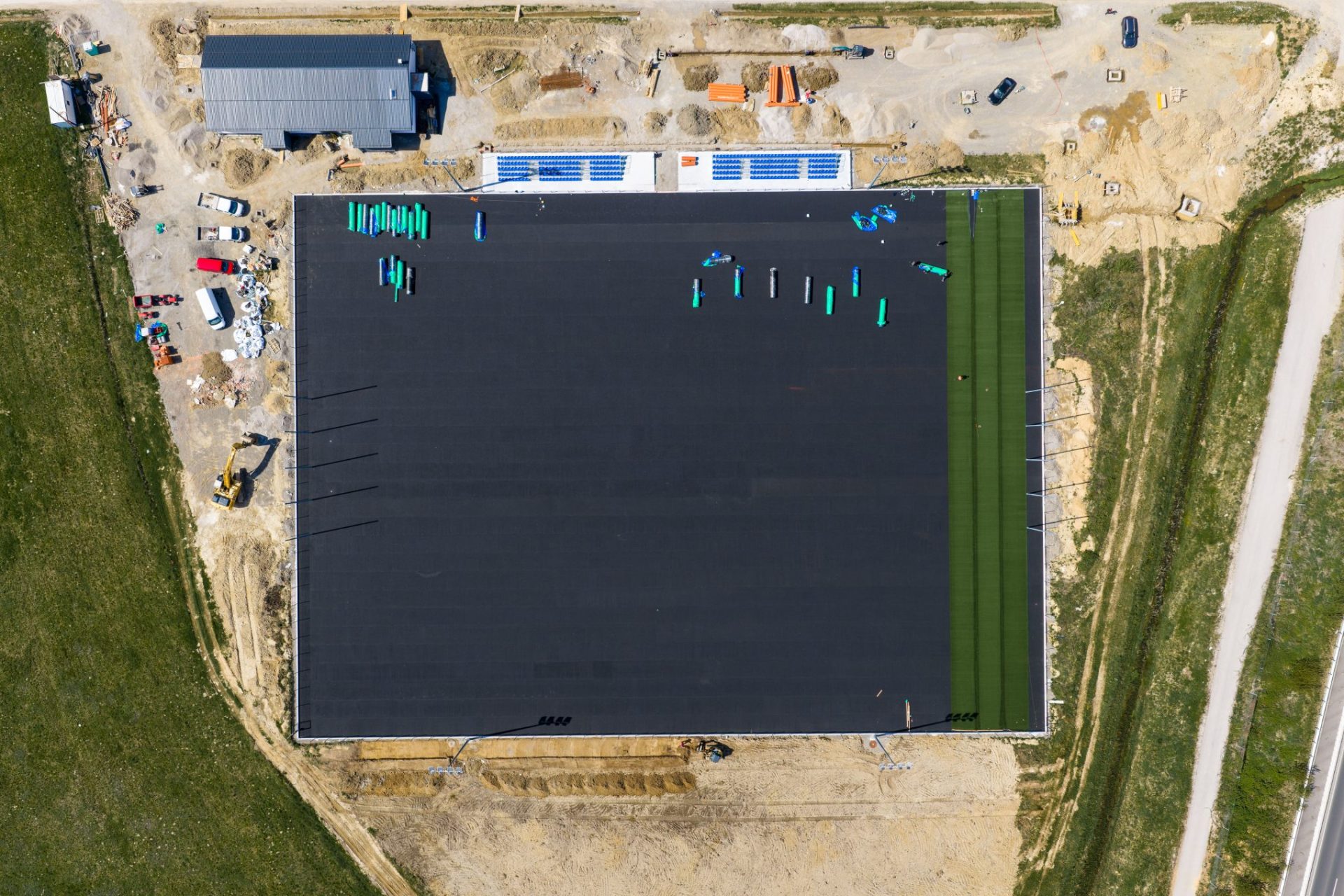 Gradnja novog nogometnog igrališta na Turnju dobro napreduje pa je tako upravo postavljena umjetna trava.