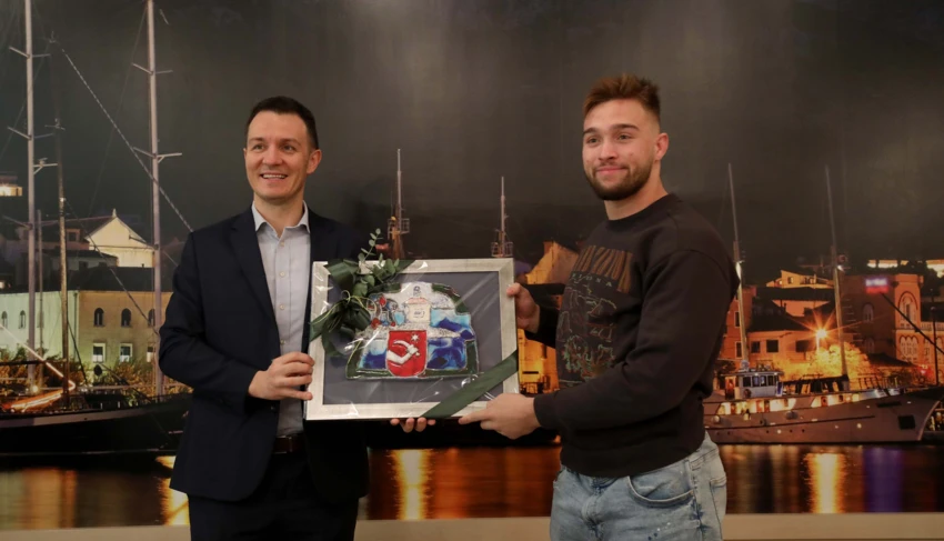 Gradonačelnik Paunović ovom mu je prigodom uručio reljef grba Grada Makarske, rad makarskog akademskog slikara Ante Grčića, kao znak priznanja za izniman sportski uspjeh i promociju grada. (Grad Makarska)