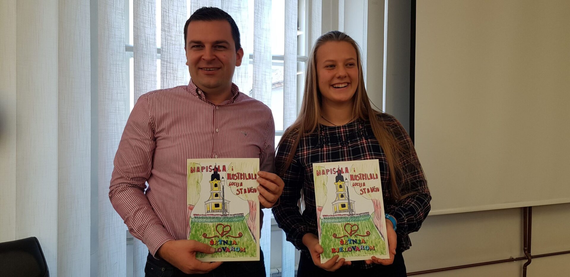 Lucija je danas povelju i slikovnicu uručila bjelovarskom gradonačelniku Dariju Hrebaku. Nakon toga mali su vijećnici razgovarali s gradonačelnikom o njima važnim temama vezanima uz naš grad poput izgradnje igrališta, besplatnih udžbenika te jelovnicima školskih kuhinja. Na prijemu su sudjelovali i zamjenica gradonačelnika Valna Bastijančić Erjavec, Vjeruška Štivić, voditeljica Dječjeg gradskog vijeća te koordinatorice Dječjeg gradskog vijeća i Društva Naša djeca Bjelovar. (Grad Bjelovar)