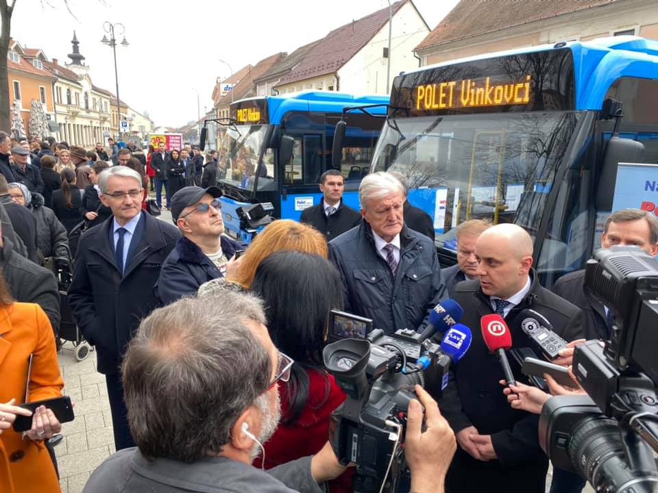 U Vinkovcima je održana završna konferencija projekta “Nabava autobusa za Polet d.o.o” kroz koji je ovaj vinkovački prijevoznik nabavio sedam modernih niskopodnih autobusa ukupne vrijednosti 15 milijuna kuna. U okviru programa organizirana je i prva vožnja autobusima, a uz Poletovce, predstavnike Gradske uprave i građane, novim autobusom Vinkovcima se provezao i ministar mora, prometa i infrastrukture Oleg Butković.